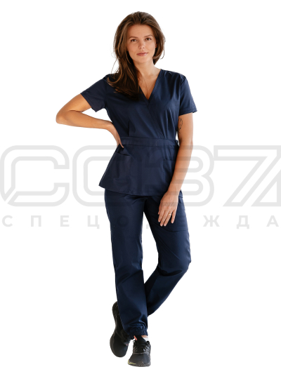 Костюм санитарный женский АР407 цв.тёмно-синий тк.хлопок/спандекс в Иваново