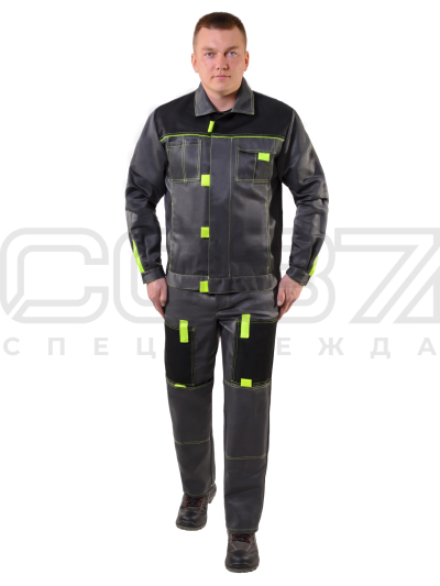 Костюм рабочий "Бирон" цв.т.серый/чёрный/лимон тк.смесовая (куртка+брюки) в Иваново
