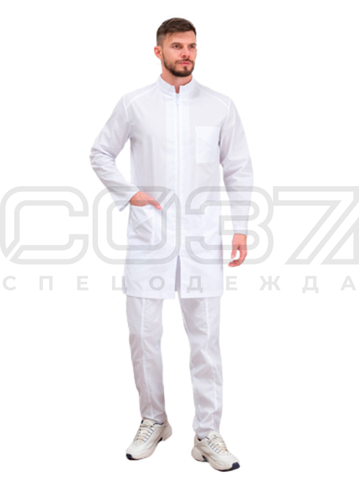 Халат медицинский мужской ИМ072 цв.белый тк.тиси в Иваново