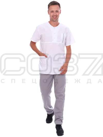 Костюм медицинский мужской АР60 цв.белый/серый тк.тиси в Иваново