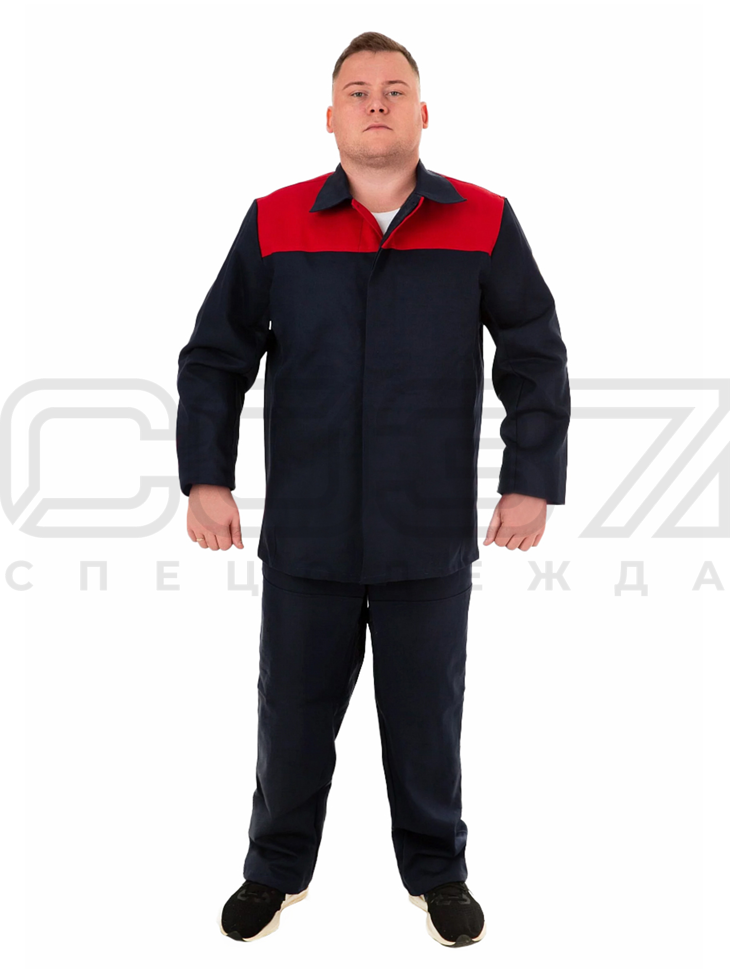 Костюм мужской для защиты от искр и брызг расплавленного металла.