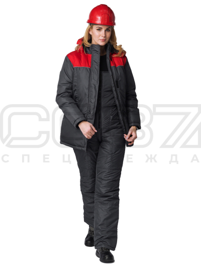 Куртка зимняя женская "Артемида" цв.т.серый/красный тк.дюспо в Иваново