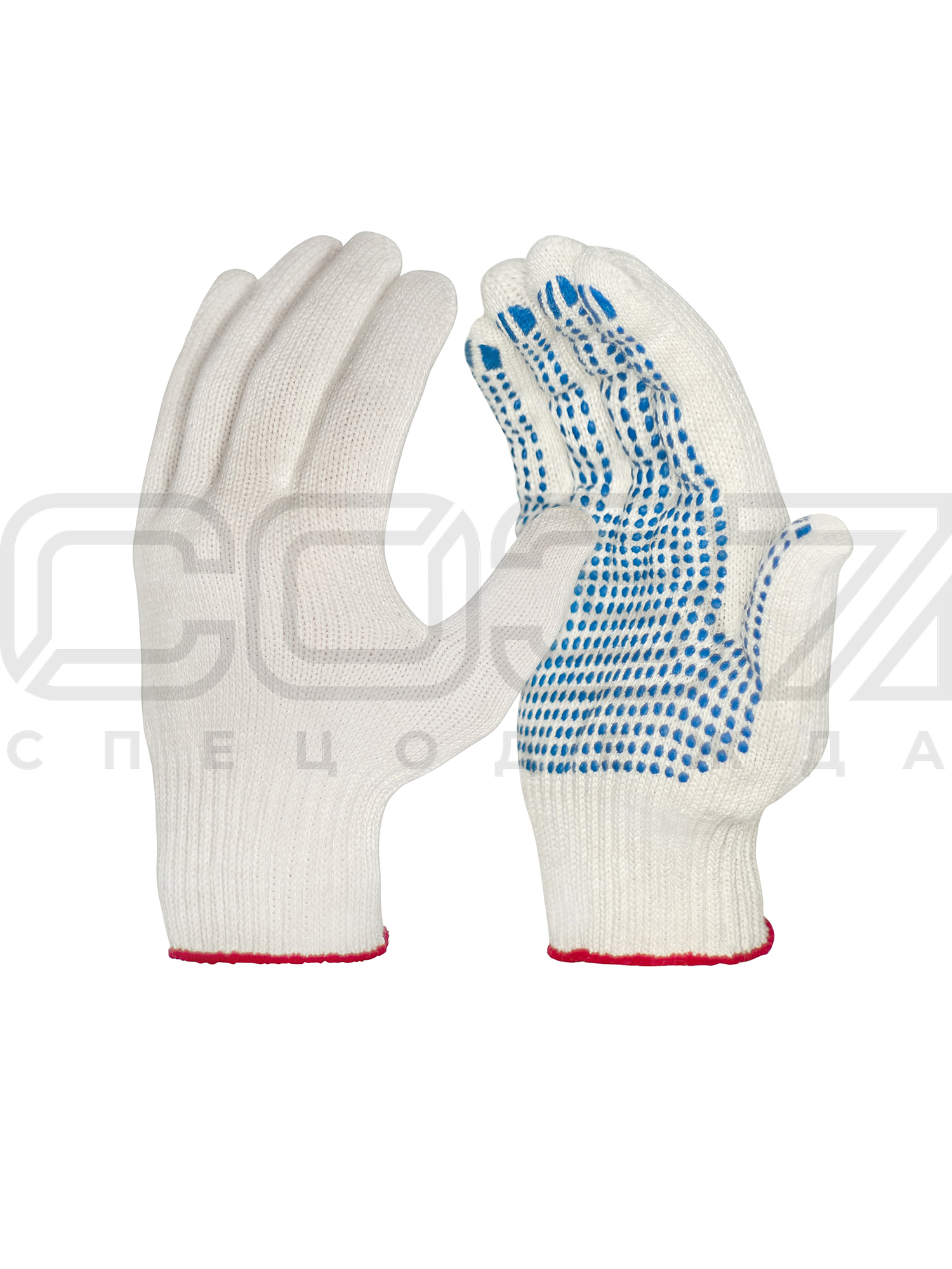 Перчатки трикотажные 6-ти нитка, 10 класс вязки, х/б - пвх точка.