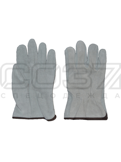 - Перчатки сшиты из высококачественного спилка КРС, равномерно прокрашенного в серый цвет.